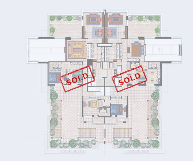 تتوّج المبنى شقّتان مزدوجتان مساحة كل منهما